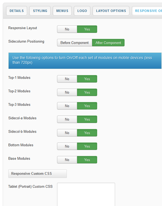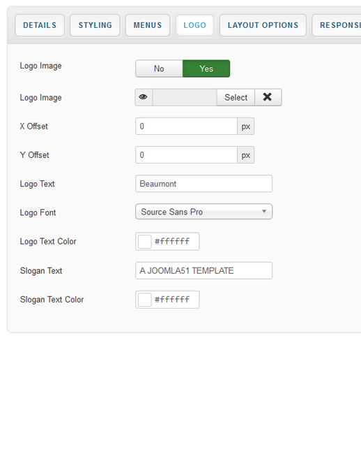 Your template parameters can be access directly from your Template Manager giving you access to a host of features including a selection of template styles, some colour choosers to help customise your template headers and links, a number of layout options and easy to use logo settings.