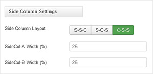 Your side column widths can also be customised via this section. Place the desired width of your side column by percentage in the Side Column Width field. Your content area will automatically contract/expand to fill the remaining available area.